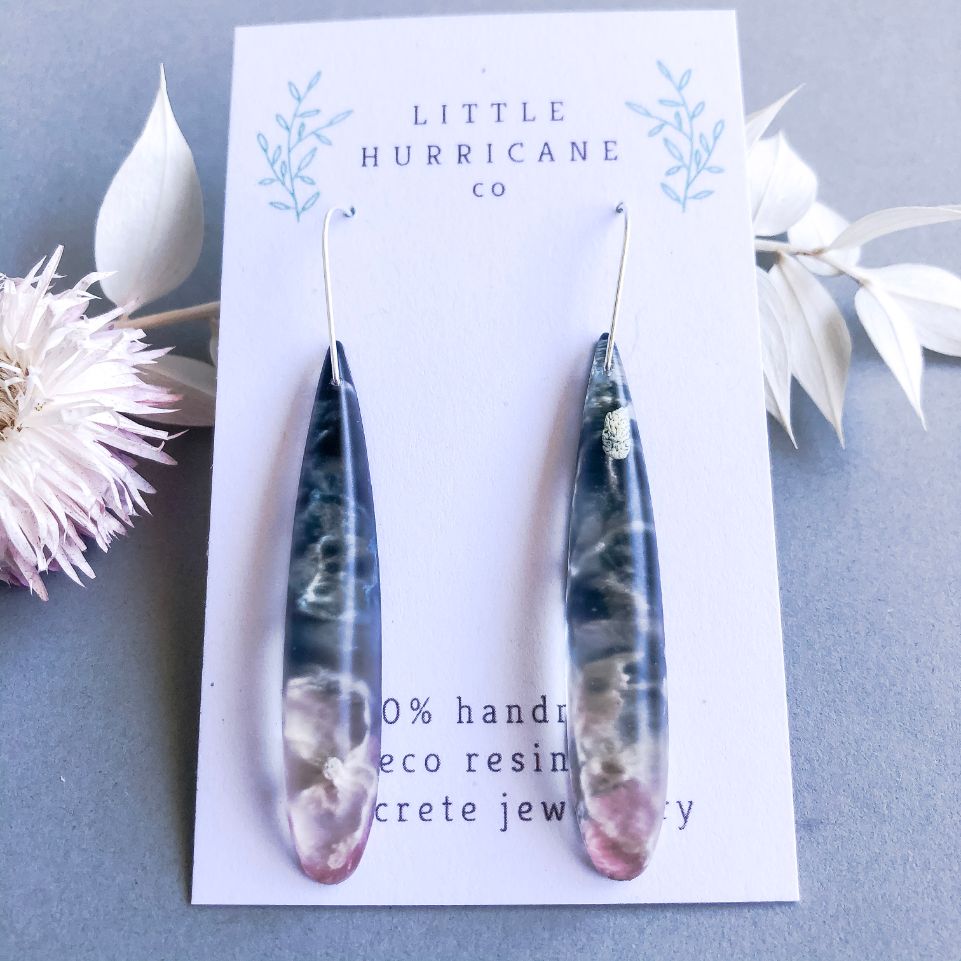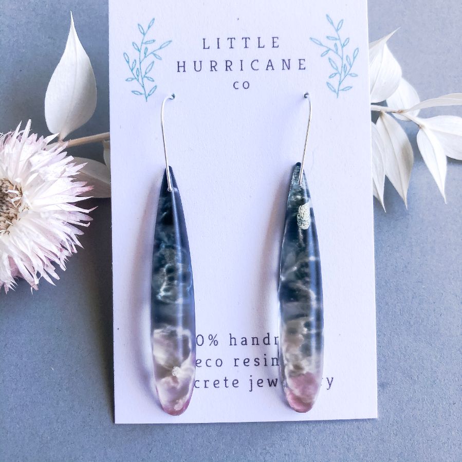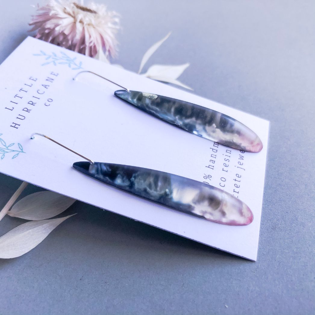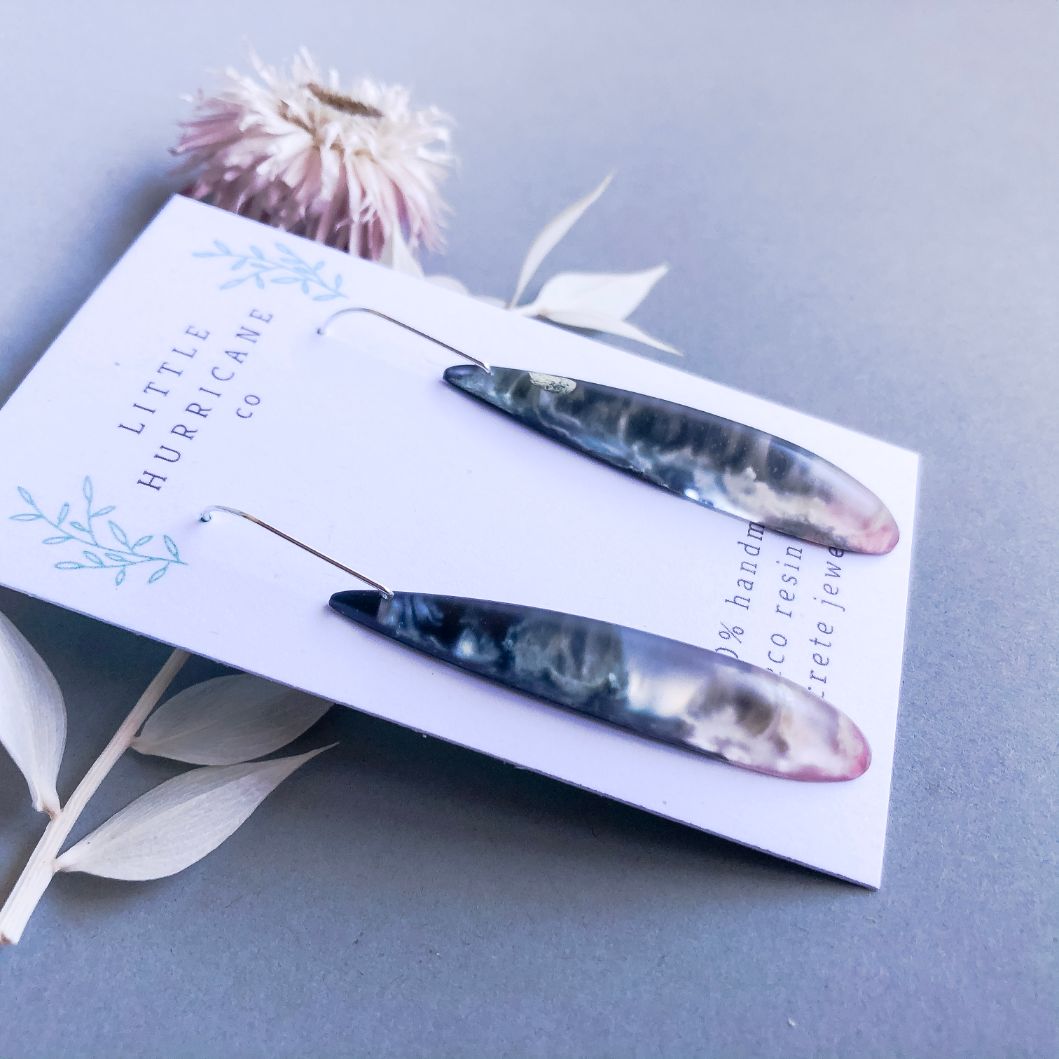 These are lovingly handmade in Melbourne. The resin is mixed and poured by hand using alcohol ink to create this wonderful effect. The resin is left to cure for 2-3 days and is then removed sanded and drilled.