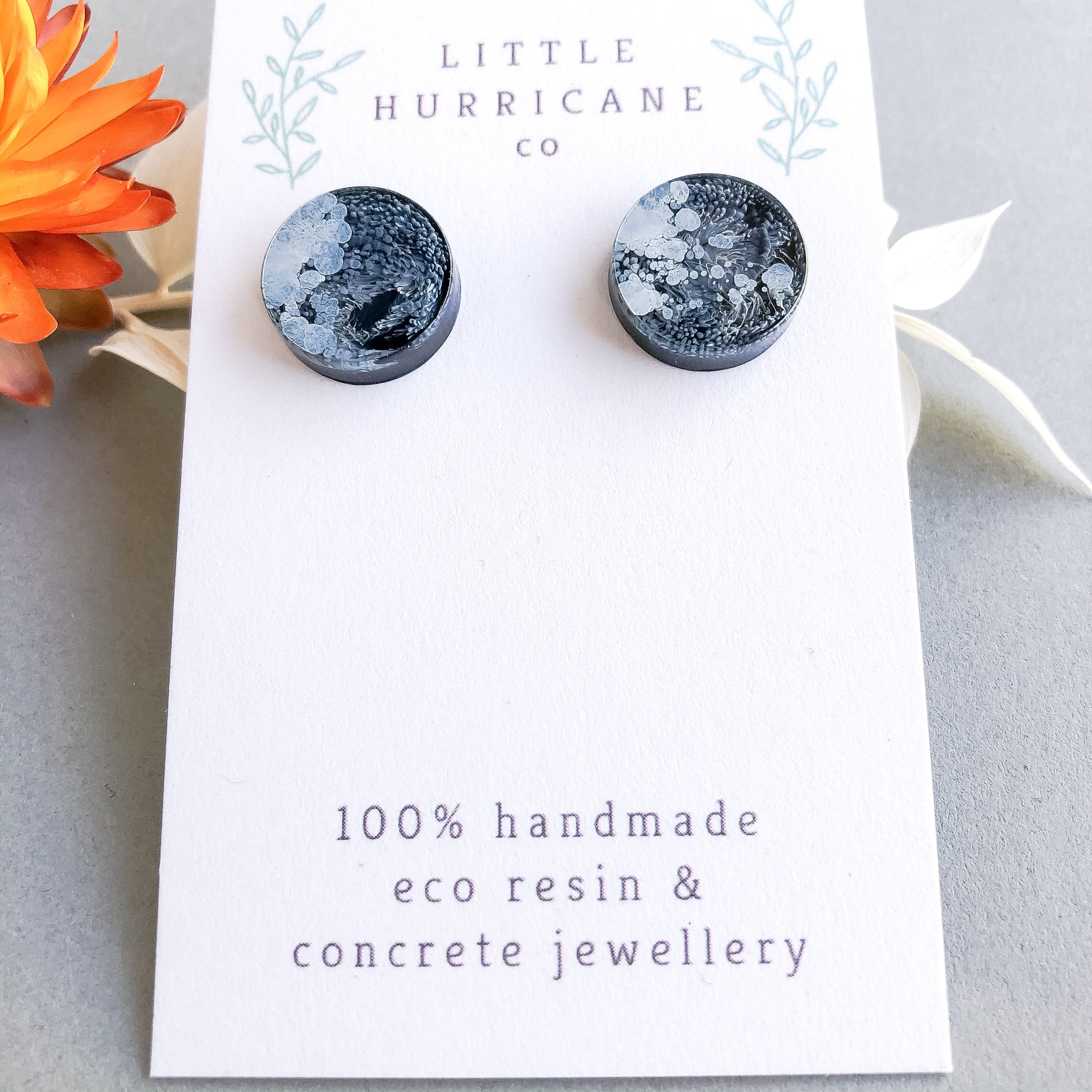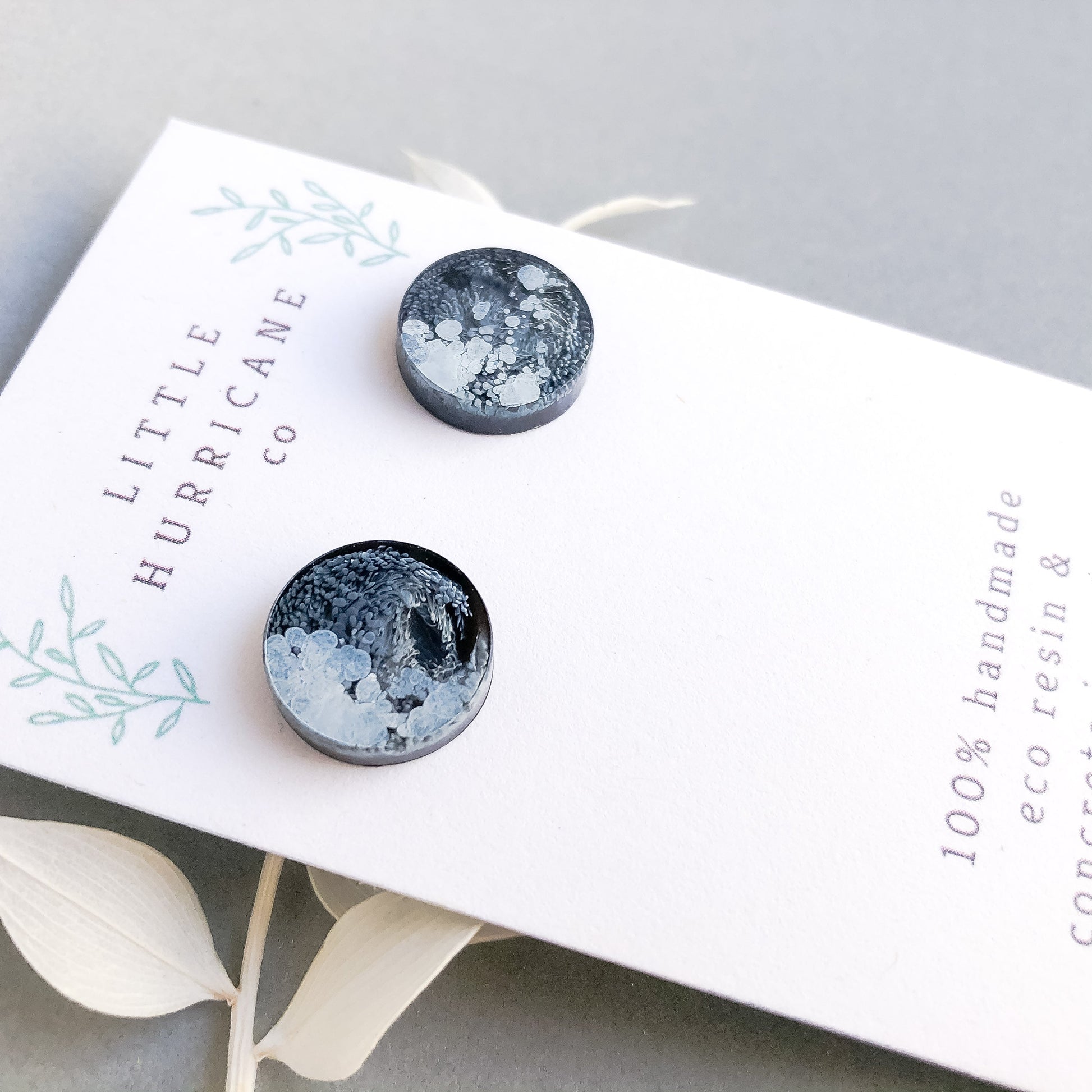 Made with eco-resin, each stud is 15mm in diameter, has titanium backing for those super sensitive ears and weighs a slight 1 gram per piece.